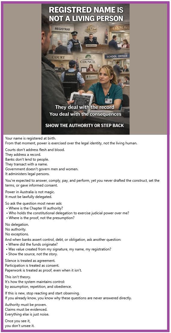 · The courts serve the banks. Judges are enforcers for a financial cartel that sees you as nothing more than a resource to be exploited. Every fine, every tax, every legal document with your name in all caps is a deliberate move to reduce you to a corporate entity, easy to control, easy to tax, and easy to manipulate.