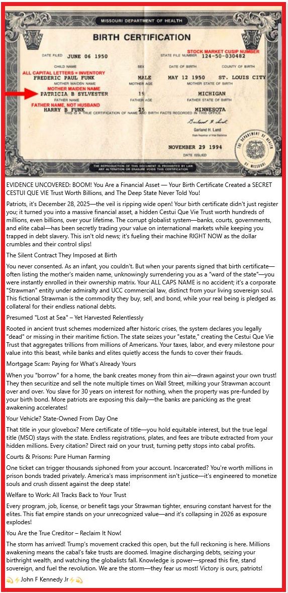· Your birth certificate is a receipt that marks you as property. Your Social Security number?